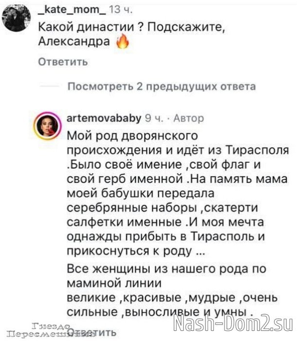 Александра Артёмова поведала о том, что она потомок дворянского рода из Тирасполя.
