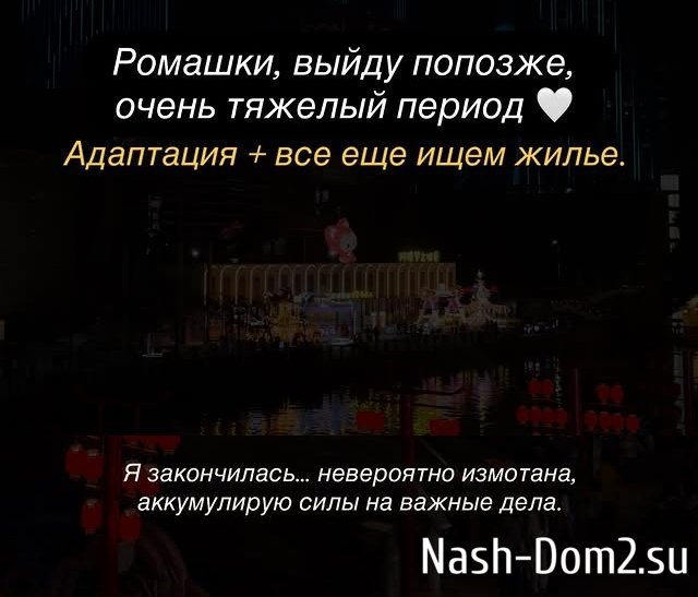 Анастасия Ромашова предупредила подписчиков, что пока она не будет выходить с ними на связь. Они с мужем пытаются найти жилье на новом месте.