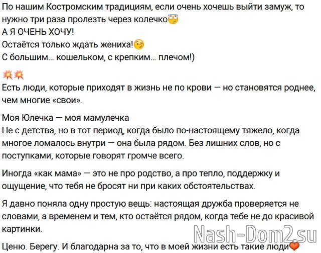 Верная подруга у Дарьи тоже имеется за периметром Дома-2, есть поддержка и опора, да и сама Даша не промах, хотя ей порой на проекте тяжело морально.