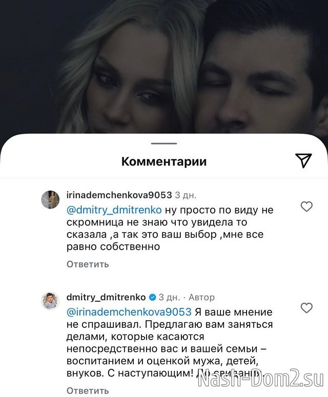 Дмитрий Дмитренко встал на защиту своей возлюбленной на своей странице в Нельзяграме.