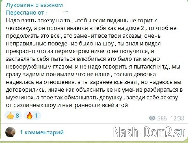 Луковкин часто говорил про спорт, здоровый образ жизни и путешествия, а на деле - в оковах пороков. Поэтому заявил в своём блоге, что берет аскезу, в первую очередь, от потери времени на сайтах знакомств. А потом и от других зависимостей решил избавиться. И тут ему дамы, которые подписались, чтобы наблюдать за парой Димы и Настей Филипповой, начали говорить, что аскеза у него от отношений. Дима отправил одну из таких подписчиц лесом и поймал такой кураж, что начал незнакомой женщине претензии предъявлять.