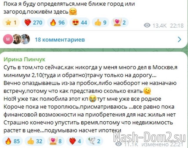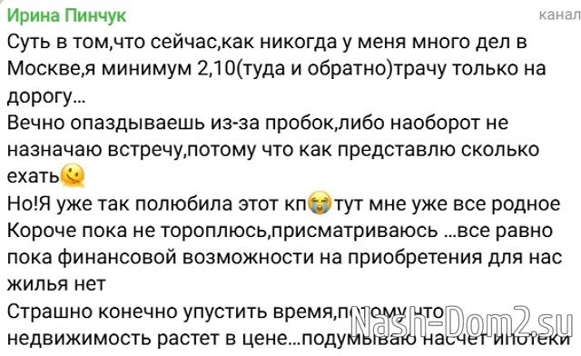 Ирина Пинчук мечтает купить жильё в коттеджном посёлке, где они теперь живут.