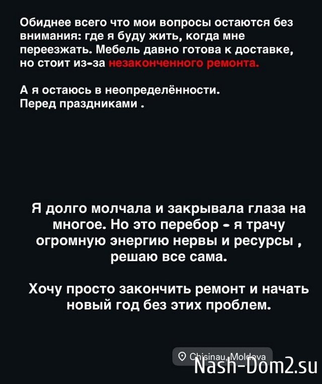 Кристина Бухынбалтэ вернулась в Кишинёв в свою квартиру, где рабочие уже третий месяц не могут доделать ремонт.