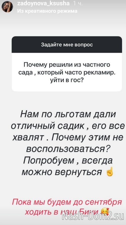 Ксения Задойнова ответила на несколько вопросов своих подписчиков в одной из соцсетей.
