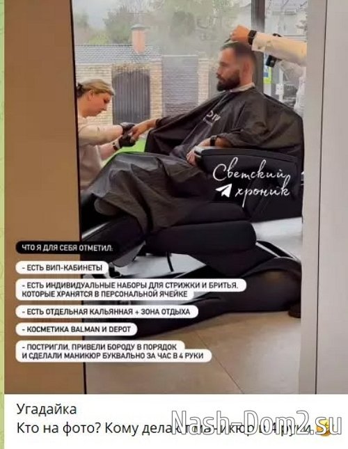 Абрикосов вспомнил, как бывший возлюбленный Ксении Кимовны Михаил Терёхин ходил в салоны красоты за маникюром. Сейчас уже Сердюков выставляет фотографии с рекламой косметологов и барберов. Представьте себе, вип-кабинет, зона релакса и инструменты для бритья в отдельной ячейке. Пока сделаешь маникюр в таком центре - день прошел.