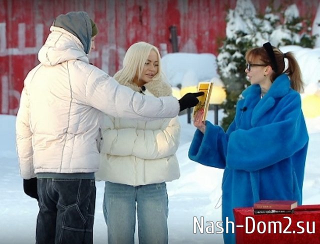 Ведущая Геш ушибы потёрла, отдышалась и вызвала бабку Веронику, вручив супружникам книгу "Мой убийца". Типа, как Альберт в койке.