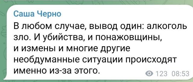 Зассанька! Алкоголь, безусловно враг. Но ты никогда не робела перед врагами. Ты сильная женшЫна. Ты должна победить врага. Поглоти его. Поглощай больше и чаще, и ты его победишь. Да, придётся пожертвовать всем. Первая под удар попадает печень. Но чего только ради победы не сделаешь. На что только не пойдёшь. Ссаня! Мы в тебя верим! И помни! Я плохого не посоветую! Всем бобра и куницу.