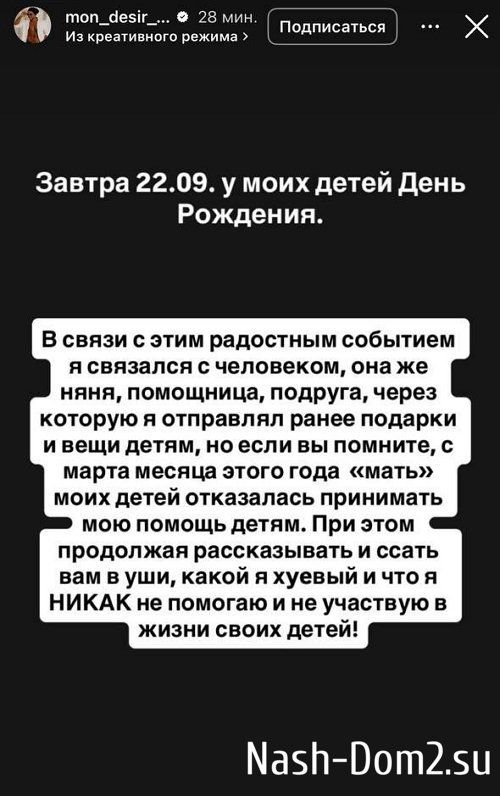 Мондезир Свет-Амур набросился с оскорблениями на Юлию Ефременкову, которая не захотела принять от него подарки для сыновей через третьих лиц.