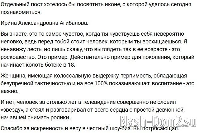 Наталья «Декретный следователь» в восторге от Ирины Агибаловой