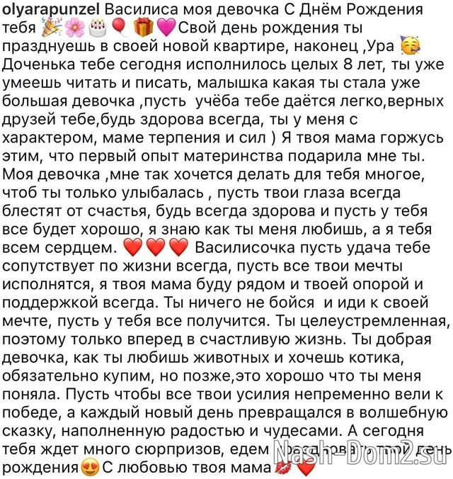 Ольга Рапунцель поздравила свою старшую дочь Василису с днём рождения.