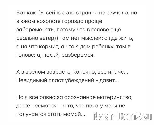 В подростковом возрасте у меня была мечта: стать мамой в 18-19 лет. Мне хотелось быть молодой мамой своему ребенку)