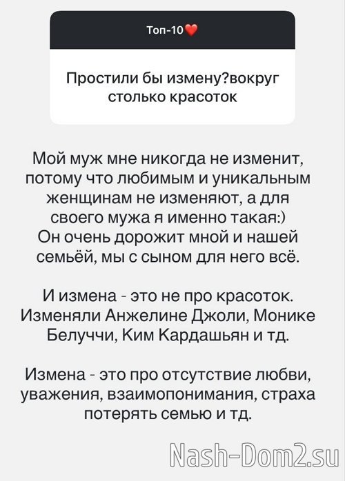Валерия Ткачёва заверила своих подписчиков в том, что её супруг никогда ей не изменит.